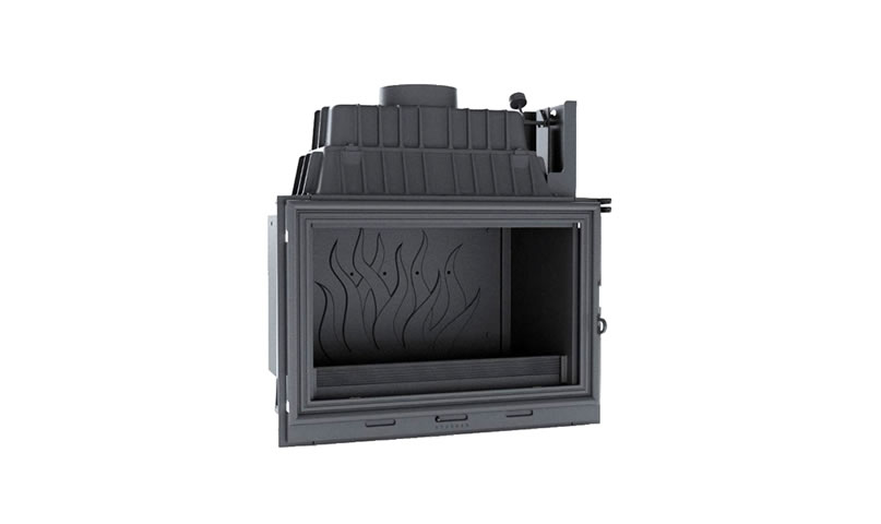Insert 8 kW, parois en fonte épaisse, grande vision du feu, bûches 50 cm, système OCS et vitre propre. Puissance nominale de 8 kW -